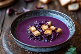 In una pentola grande, scalda un po' di olio e soffriggi i porri fino a quando saranno morbidi. Aggiungi il cavolo viola e mescola bene. Dopodiché versa 500 ml d'acqua e aggiusta di sale. Porta a ebollizione, poi abbassa il fuoco e fai sobbollire per 20-25 minuti, finché il cavolo non si sarà intenerito.